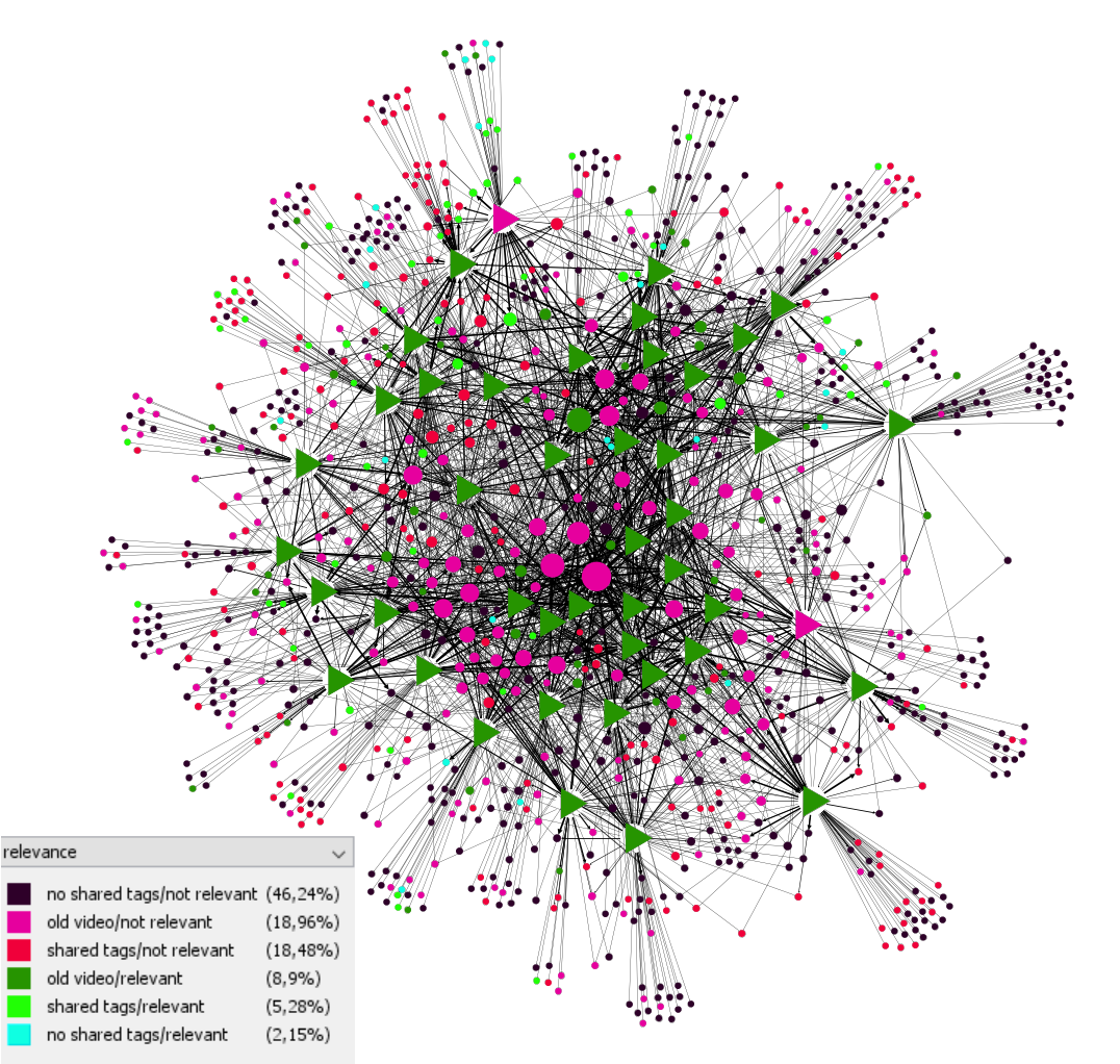 For the third data collection, the recommendations were collected after watching the top of relevant recommendations (44 videos, including several watched videos from the second data collection as they were frequently recommended again).
